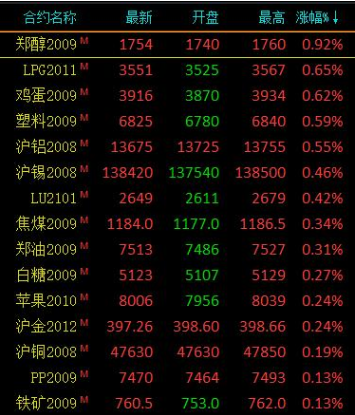 6月23日讯国内期货市场早盘收盘,商品期货大都跌落,甲醇、LPG、鸡蛋、塑料等小幅上涨;豆一跌超1%,玉米、沪镍等小幅跌落。