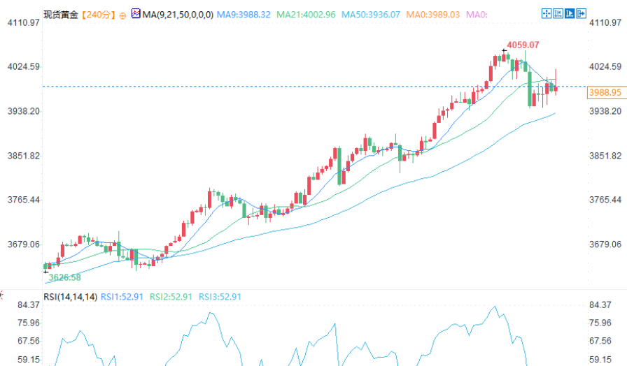 整体来看,金价虽暂时受阻于4000美元关口,但在地缘风险、降息预期与全球央行购金支撑下,中期上行趋势未被破坏。