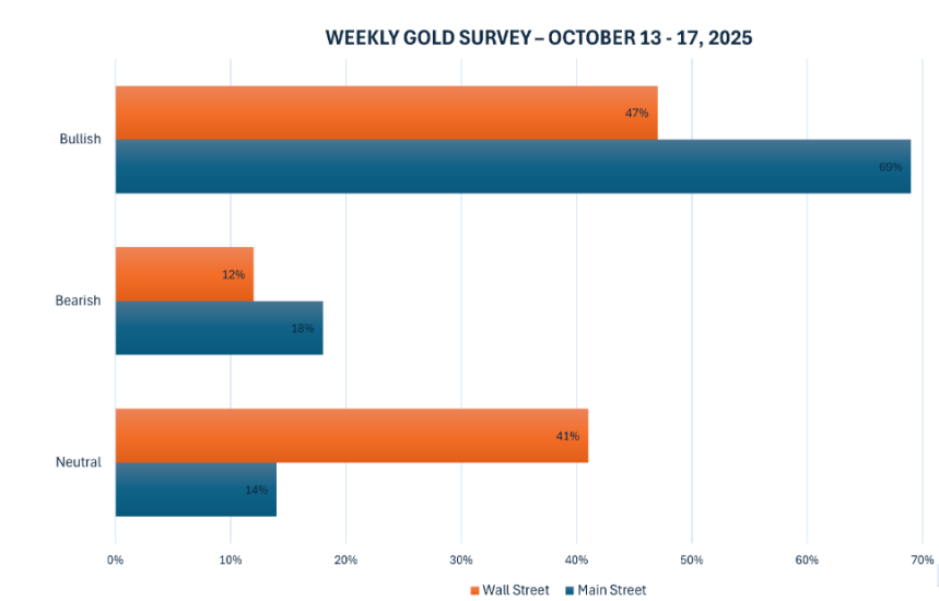 而散户的乐观情绪更高: 69% 的投票者预计下周金价仍将上涨。